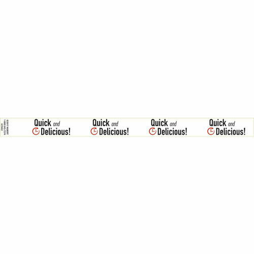 Band-It Food Label, "Quick And Delicious", 13-3/4" x 1", rectangular, tamper-evident seal, paper, red/black imprinted, white background (500 labels per roll)