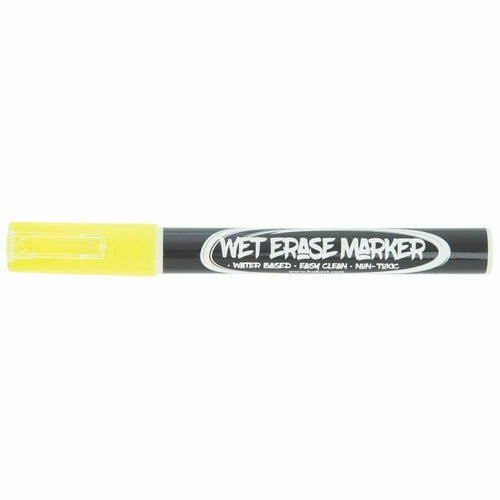 Wet Erase Marker, fine point, non-toxic ink, safe for use on non-porous surfaces, bright yellow