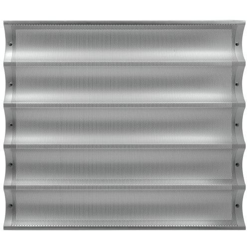 Baguette/French Bread Pan, holds (5) long rolls, 26" x 18" x 1"H overall, mould size: 3" x 26", perforated sides, 3003 aluminum