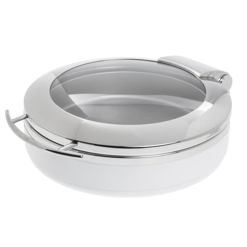 Induction Chafer, 6-1/3 qt., 17-1/3" x 21-1/4" x 6-1/3"H, round, with food pan & hydraulic self-closing cover with glass window, powder-coated stainless steel, white