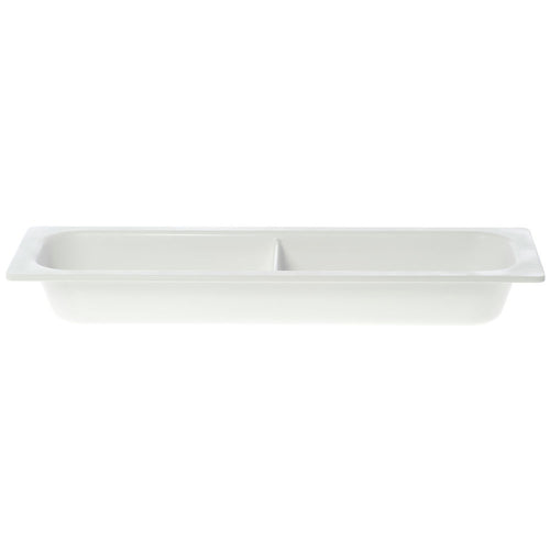 Cold Food Pan, 1/2-size long, 21-1/2" x 6-1/2" x 2-1/2"H, divided, scratch & break resistant, dishwasher safe, melamine, white, NSF