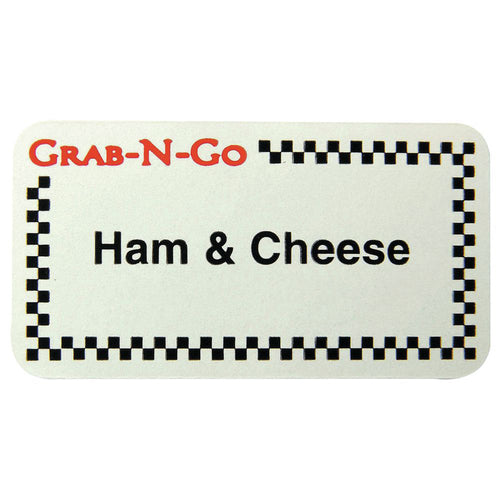 Grab-N-Go Food Label, "Ham & Cheese", 1-3/4" x 7/8", rectangular, paper, red/black imprinted, checkered border, white background (1000 each per roll)