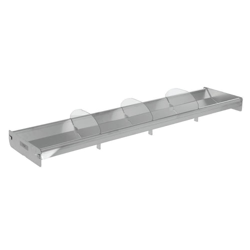Meat & Seafood Merchandising Tray, 28-1/2" x 6" x 2"H, rectangular, reversible, with (3) clear PETG plastic dividers, stainless steel, NSF