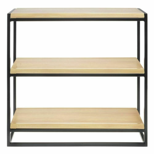 Cerve Collection Display Stand, 3-tier, 21" x 6-2/5" x 20-7/8"H, rectangular, straight, (3) butcher block melamine shelves, metal frame, black powder coat finish