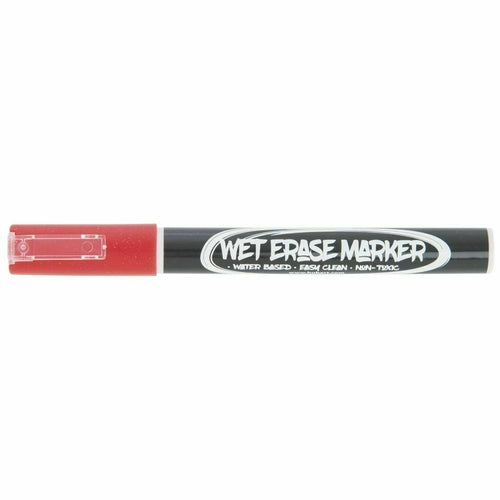 Wet Erase Marker, fine point, non-toxic ink, safe for use on non-porous surfaces, bright red