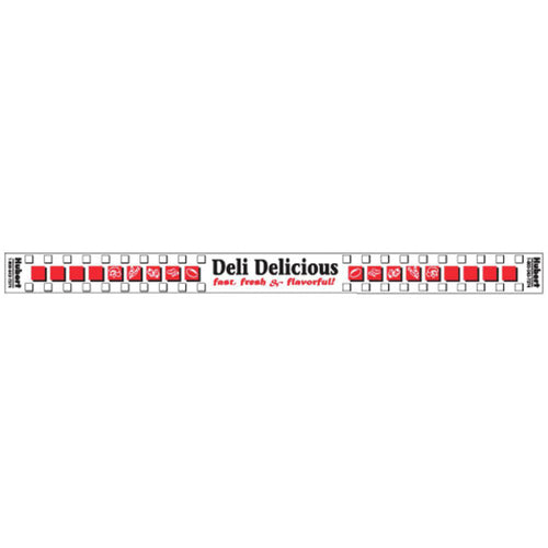 Band-It Food Label, "Deli Delicious", 13-3/4" x 1", rectangular, tamper-evident seal, paper, red/black imprinted, white background (500 labels per roll)