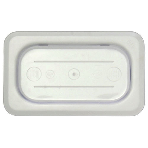 Cover, 1/9-size, for Cold Food Pan, solid, with handle, temperature range: 20° to 190°F, dishwasher safe, polycarbonate, clear, NSF