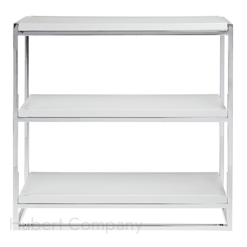 Cerve Collection Display, 3-tier, 21-7/8"W x 6-2/5"D x 20-13/16"H, 8-3/16" shelf spacing, white melamine shelves, chrome plated metal frame