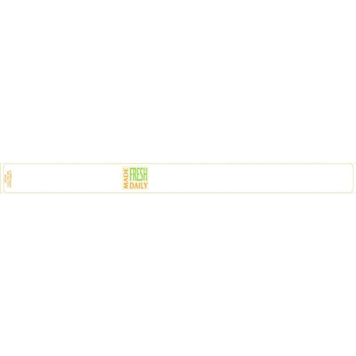 Band-It Laser Labels, "Made Fresh Daily", 13-3/4" x 1-1/8"H, rectangular, decorated by downloading a formatted Microsoft® Office Excel® user-friendly template, tamper-resistant seal, paper, green/gold imprinted, white background (priced per pack, 90 sheets = 630 labels per pack)