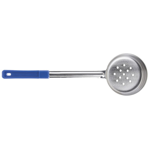 Portion Spoon, 8 oz., 14-1/2", perforated, color-coded, dishwasher safe, stainless steel, plastic handle with hanging hole, blue, NSF