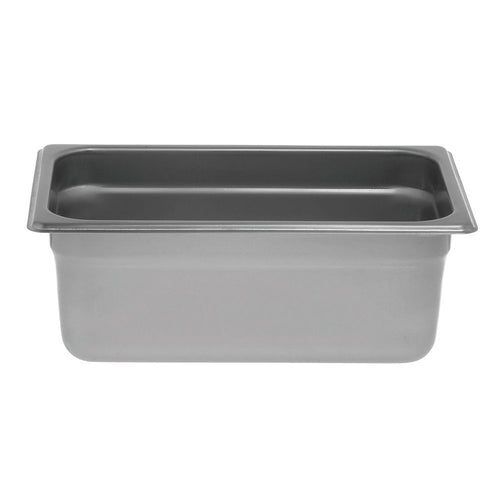 Steam Table Pan, 1/4-size, 4" deep, solid, anti-jam, 22-gauge 18/8 stainless steel, NSF
