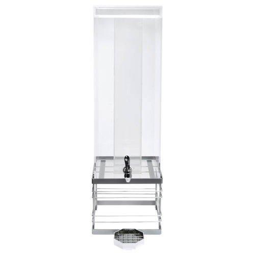 Beverage Dispenser, 5 gallon, 10-1/4" x 10-1/2" x 30"H, square, with ice chamber, silver powder-coated steel wire base, acrylic tank, clear