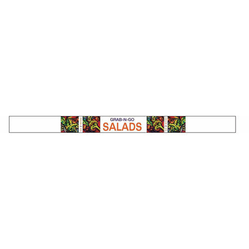 Band-It Food Label, "Grab-N-Go Salads", 13-3/4" x 1", rectangular, tamper-evident seal, paper, multi-color imprinted, white background (500 labels per roll)