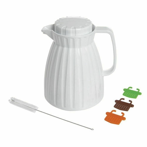 Beverage Server, 0.6 L, includes: (1) twist on lid, (1) push button lid, (1) cleaning brush, & (3) color coded ID tags (orange, green, & brown), foam insulated, heat retention for up to 3 hours, plastic, white, NSF