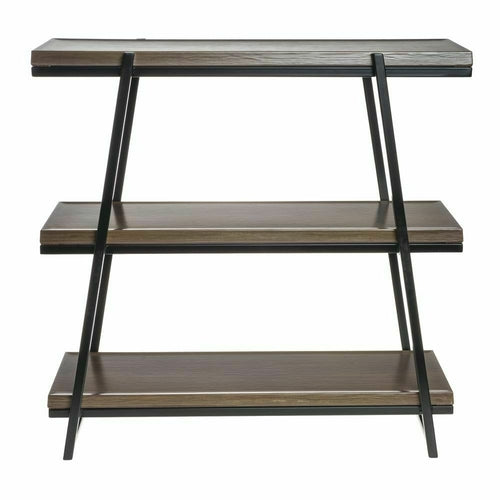 Cerve Collection Display Riser, 3-tier, 20-7/8" x 7-27/64" x 20-21/32"H, rectangular, angled, (3) acacia melamine shelves, metal frame, black powder coat finish