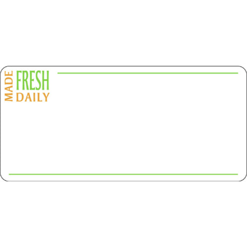 Laser Labels, "Made Fresh Daily" heading, 3-1/2" x 1-5/8"H, rectangular, 12-up, permanent adhesive, decorated by using Avery ™ 5198 user-friendly template, FDA-approved, paper, green/gold imprinted, white background (priced per pack, 65 sheets with 12 labels each = 780 labels per pack)
