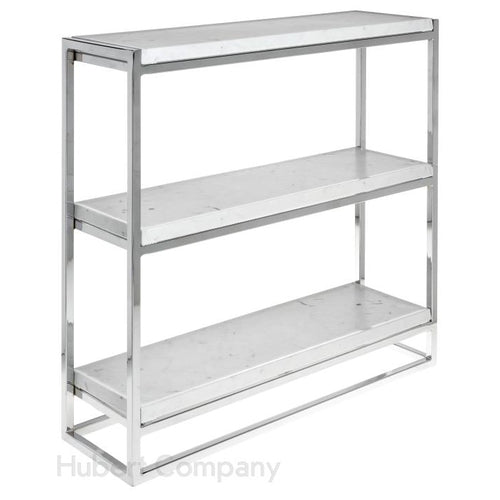 Cerve Collection Display, 3-tier, 21-7/8"W x 6-2/5"D x 20-13/16"H, 8-3/16" shelf spacing, marble melamine shelves, chrome plated metal frame