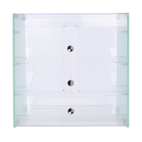Silver Satin™ Display Case, 19" x 16" x 19"H, small, rectangular, 3-shelf, countertop, front & rear serve (full or self-service), chrome knobs, metal & silver powder-coated wire fused, 3/8" frosted green sides, acrylic, clear