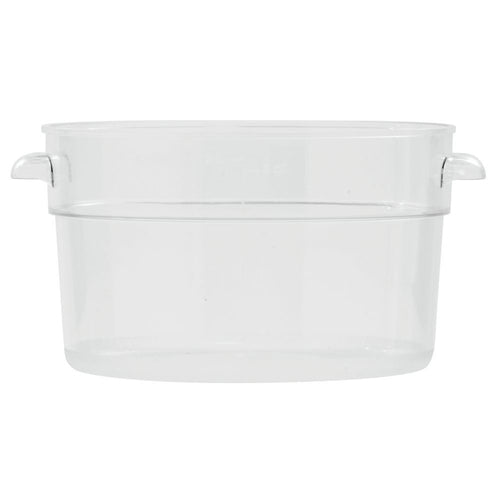 Container, 2 qt., 8-1/8" dia. x 4-1/4"H, round, built-in handles, stackable, temperature range: -40° to 212°F, dishwasher safe, polycarbonate, clear, NSF