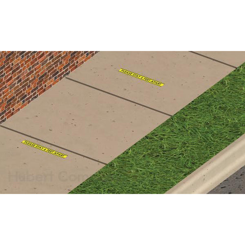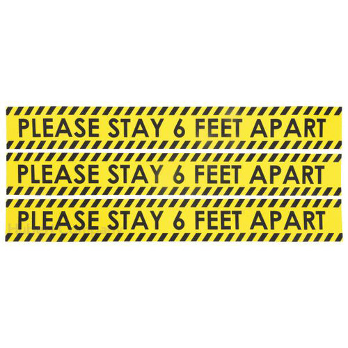 Outdoor Sidewalk Decal, "please stay 6 feet apart", 24"L x 3"H, rectangular, removable adhesive, PVC with clear over laminate, yellow with black print (3 each per pack)