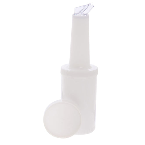 Store-N-Pour, 1 liter, 3-1/2" dia. x 13"H, round, dishwasher safe, polypropylene lid, SAN plastic spout, polyethylene bottle, white