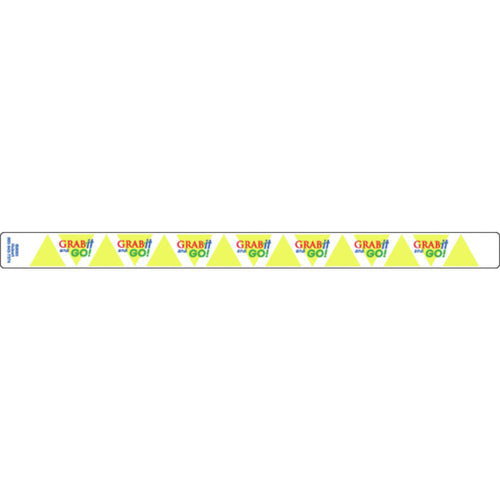 Band-It Food Label, "Grab It And Go", 13-3/4" x 1", rectangular, tamper-evident seal, paper, yellow/multi-color imprinted, white background (500 labels per roll)