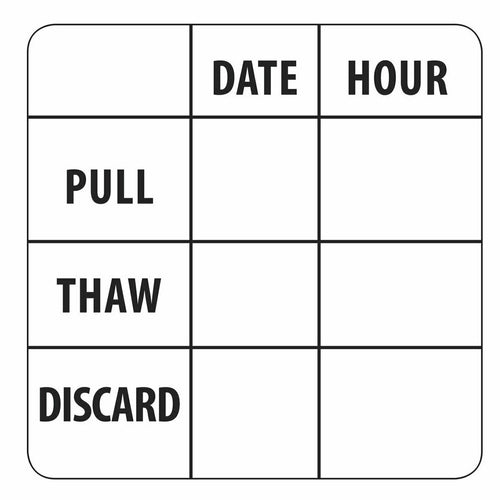 Label, "Pull/Thaw/Discard", 2" x 2", square, write-in, removable, paper, black imprinted, white (500 each per roll)