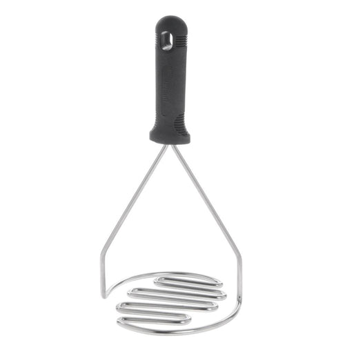 Potato Masher, 9", round, stainless steel head, black Santoprene® handle