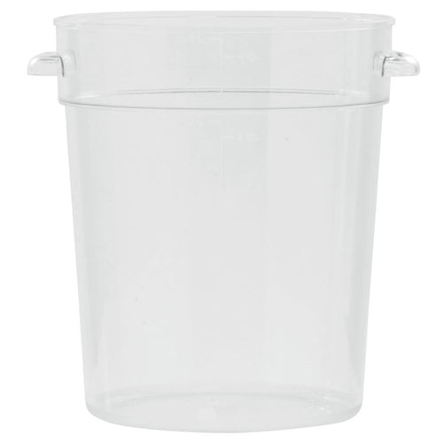 Container, 4 qt., 8-1/4" dia. x 8-2/5"H, round, built-in handles, stackable, temperature range: -40° to 212°F, dishwasher safe, polycarbonate, clear, NSF
