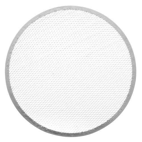 Pizza Screen, 14" dia., round, perforated, seamless rim, aluminum