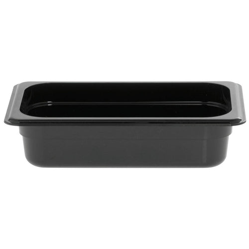 Cold Food Pan, 1/4-size, 2-1/2" deep, smooth non-stick interior, temperature range: -40° to 210°F, dishwasher safe, polycarbonate, black, NSF