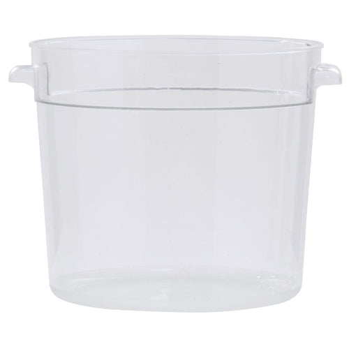 Container, 6 qt., 10" dia. x 7-3/4"H, round, built-in handles, stackable, temperature range: -40° to 212°F, dishwasher safe, polycarbonate, clear, NSF