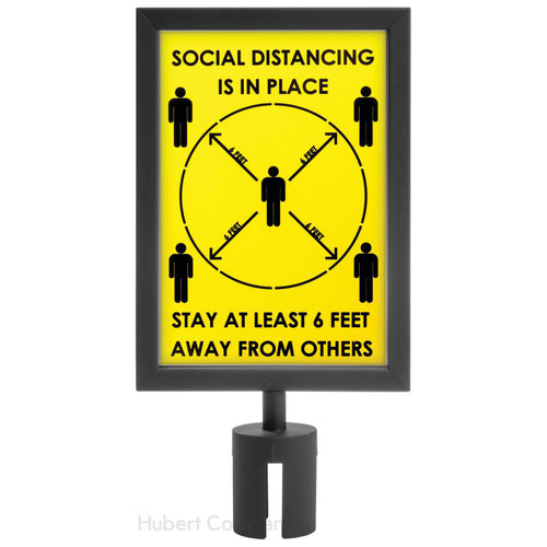Stanchion Sign, "social distancing is in place; stay at least 6 feet away from others", 8-1/10"W x 11-3/4"H, vertical, plastic, yellow with black print (fits 62986)