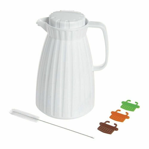 Beverage Server, 1.2 L, includes: (1) twist on lid, (1) push button lid, (1) cleaning brush, & (3) color coded ID tags (orange, green, & brown), foam insulated, heat retention for up to 3 hours, plastic, white, NSF