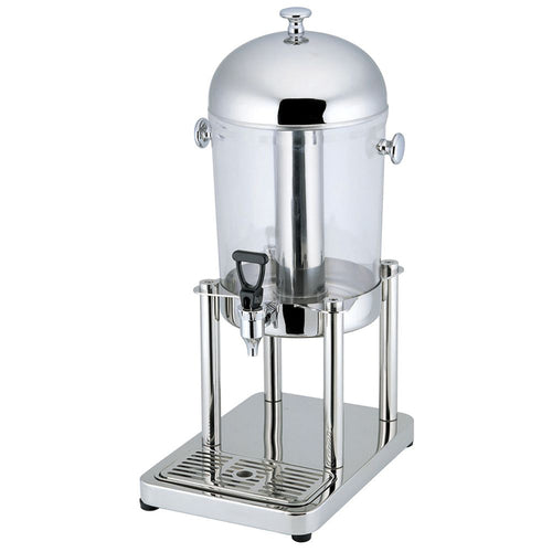 Beverage Dispenser, 9 liter, 10-5/8" x 8-5/8" x 23-7/16"H, round, built-in drip tray, with spigot, stainless steel base, lid & ice tube, polycarbonate tank, clear