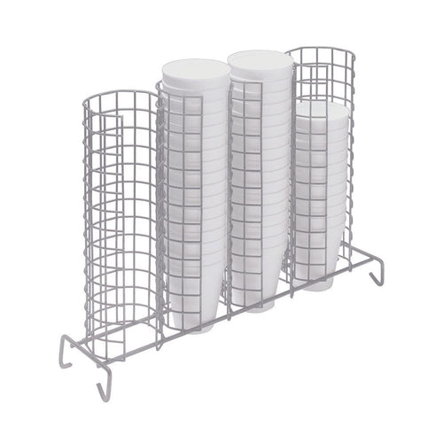 Cup & Lid Dispenser/Rack, 4-compartment, 17" x 4" x 12-1/2"H, rectangular, countertop, holds cups/lids up to 3-3/4" dia. (16/24/32 oz.), flexible frame, powder-coated steel wire grid, silver