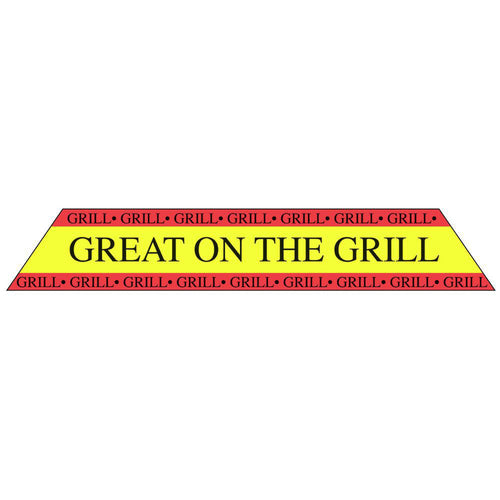 Food Packaging Label, "Great On The Grill", 4-1/2" x 3/4", trapezoid, ribbon style, paper, black imprinted, red trim, yellow background (500 each per roll)