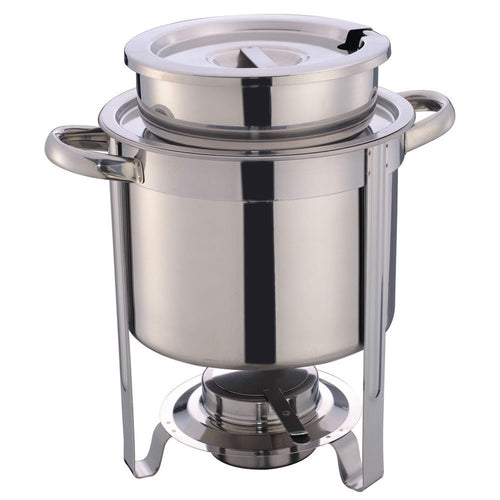 Soup Station Chafer, 4-1/5 qt., 12-3/8" x 9-2/8" x 13"H, round, with food pan, water pan, frame, lift-off cover & fuel cell holder, 18/0 stainless steel
