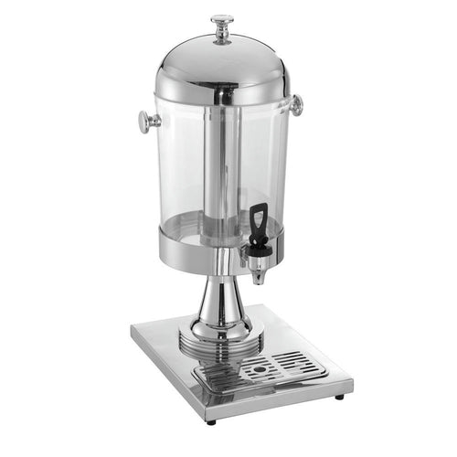 Beverage Dispenser, 2.1 gallon, 10-1/2" x 14-1/8" x 22-1/5"H, round, built-in drip tray, with spigot, stainless steel base, lid & ice tube, polycarbonate tank, clear
