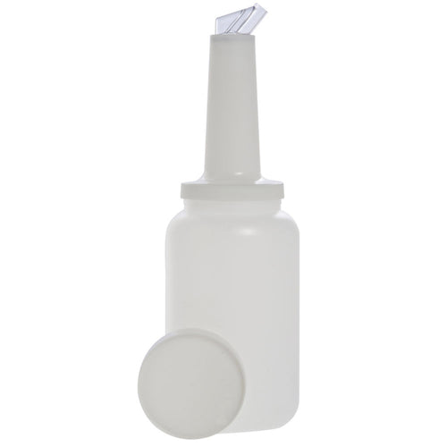 Store-N-Pour, 2-1/2 liter, 5" dia. x 15"H, round, dishwasher safe, polypropylene lid, SAN plastic spout, polyethylene bottle, white