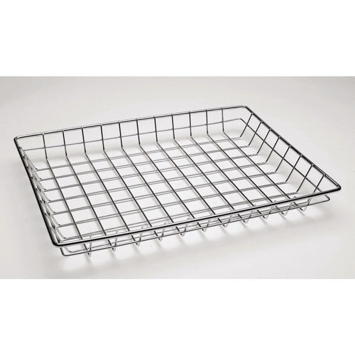 Basket, 18" x 13" x 2"H, rectangular, open grid, steel wire, chrome-plated