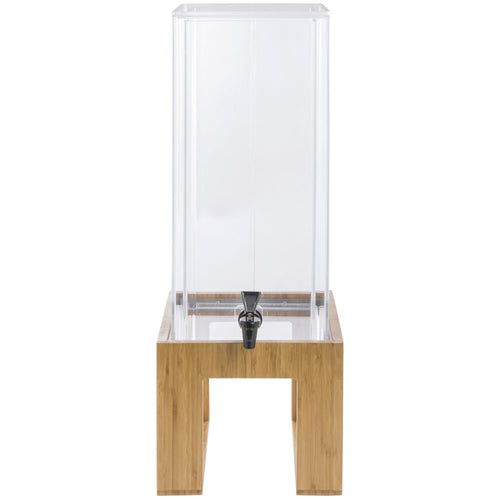 Infusion Beverage Dispenser, 3 gallon, 9-3/4" x 17-1/4"H, clear acrylic dispenser, 24-3/4" overall height, double-wall, removable inner wall, flat lid, bamboo stand