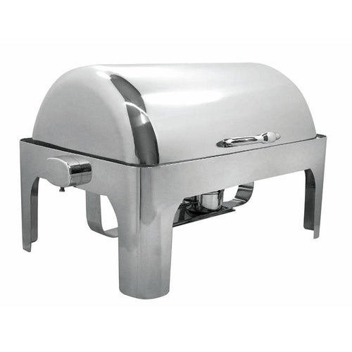Chafer, full-size, 9 qt., 26-3/8" x 19-1/4" x 18-1/9"H, rectangular, with food pan, water pan, roll-top cover, & fuel source, dripless, clutchless locking mechanism, stainless steel, mirror finish