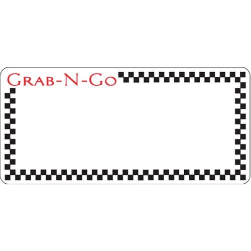Laser Labels, "Grab-N-Go", 3-1/2" x 1-5/8"H, rectangular, 12-up, decorated by using Avery ™ 5198 user-friendly template, FDA-approved permanent adhesive, paper, black/red imprinted with checkered border, white background (priced per pack, 65 sheets with 12 labels each = 780 labels per pack)