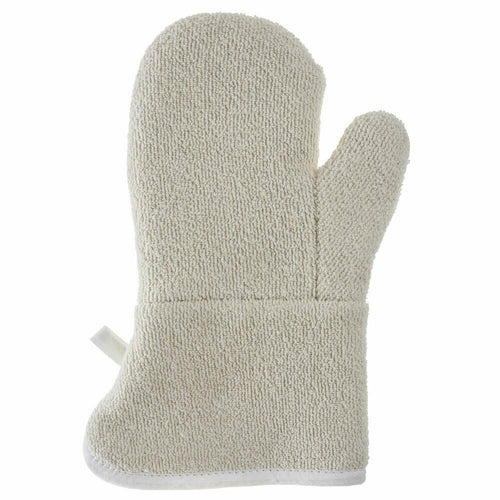 Oven Mitt, 13"L, hanging loop, heat resistant up to 500°F, dishwasher safe, terry cloth, beige (pair of 2)