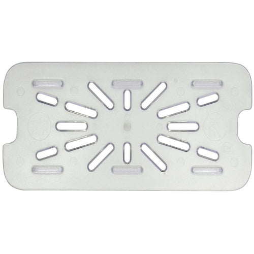 Drain Shelf, 1/4-size, for Cold Food Pan, with side notches, temperature range: -40° to 210°F, dishwasher safe, polycarbonate, clear, NSF