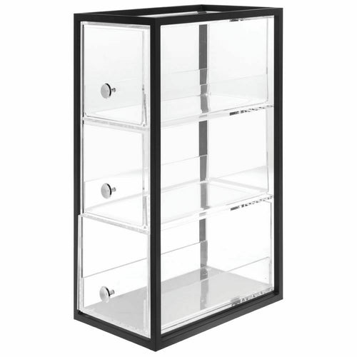 Cerve Collection Bread Display, 3-tier, self-serve, 13-5/32" x 8-7/64" x 21-1/4"H, non-refrigerated, countertop, (3) slide out doors, metal knobs, clear acrylic body, metal frame, matte black powder coat finish