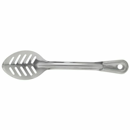Basting Spoon, 11", slotted, one-piece, hanging hole, stainless steel