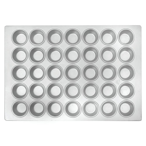 Muffin Pan, holds (35) 3-4/5 oz. muffins (5 rows of 7), 25-7/8" x 17-7/8" x 1-3/8"H, rectangular, silicone-glazed, aluminized steel