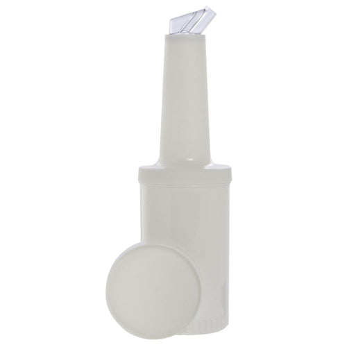 Store-N-Pour, 1/2 liter, 3-1/2" dia. x 10-1/4"H, round, dishwasher safe, polypropylene lid, SAN plastic spout, polyethylene bottle, white